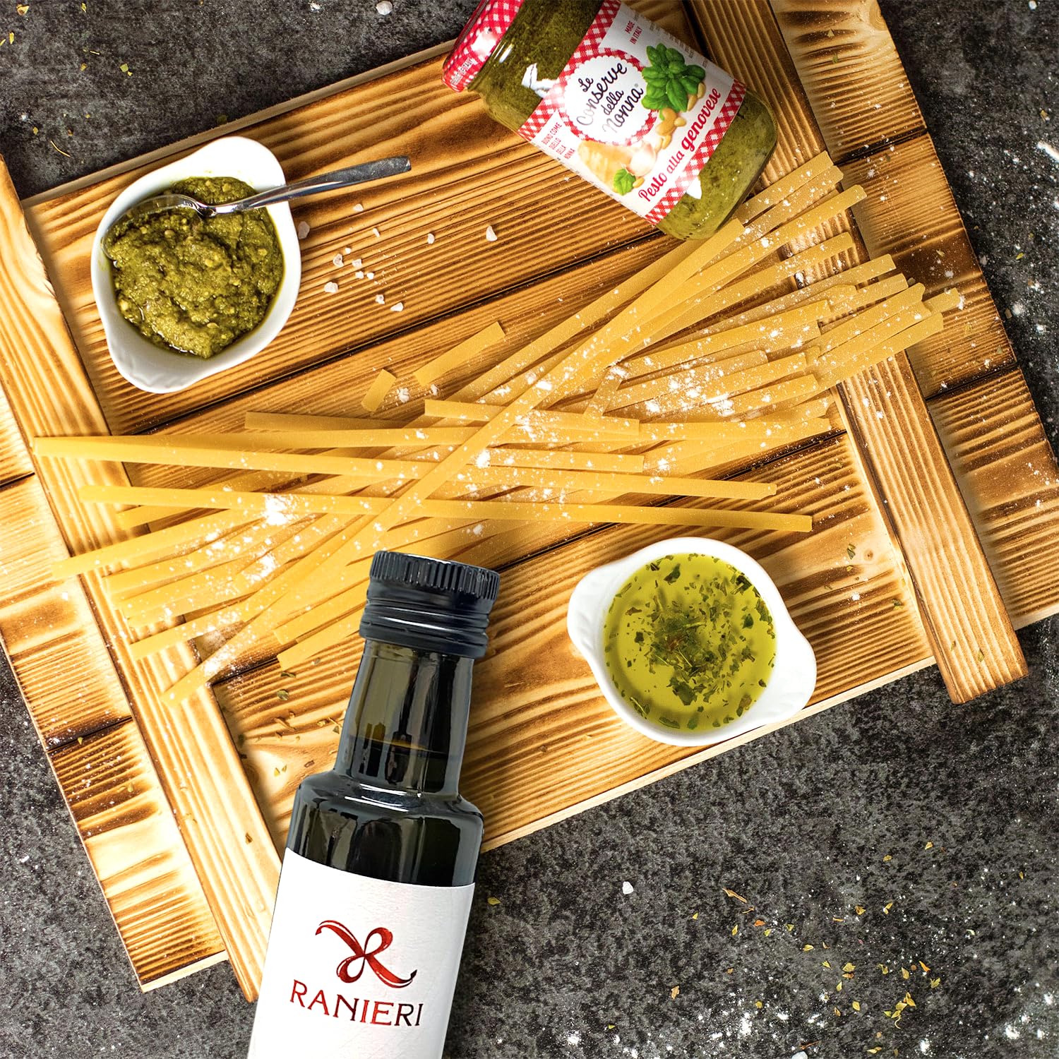 Geschenkidee mit Pasta – gemischter Futterkorb mit Gourmet-Köstlichkeiten für Feinschmecker, die die mediterrane Küche lieben und gerne kulinarisch kochen und essen