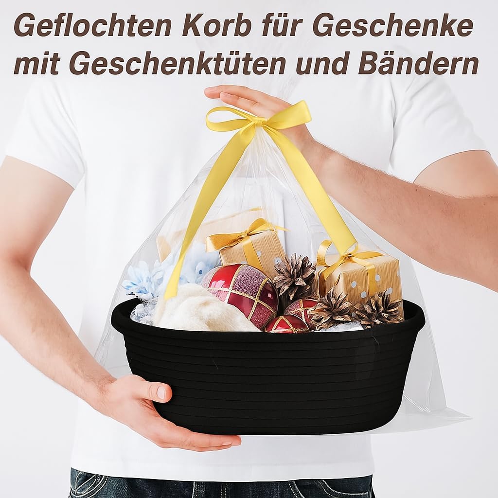 Unser Set beinhaltet 1 leeren Geschenkkörbchen, 1 transparente Geschenktüte und 1 Geschenkband, die Ihren Geschenken eine individuelle Note verleihen.