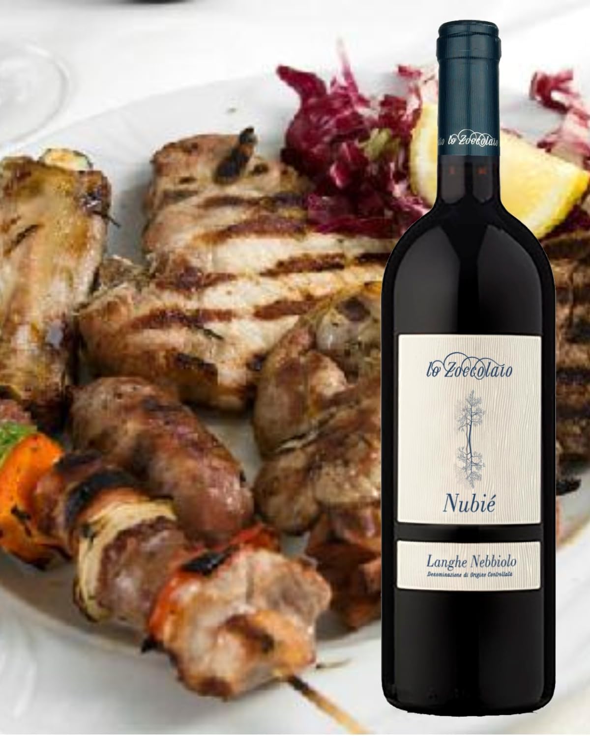 Langhe Nebbiolo DOC Nubié Lo Zoccolaio. Farbe: Rubinrot mit Granattendenz. Aroma: Die Nase überzeugt mit Noten von roten Früchten, belebt durch würzige Anklänge. Geschmack: weich, rund und vollmundig mit leichten Tanninen. Passt zu Wild, Pasta mit reichhaltigen Saucen und Hartkäse.