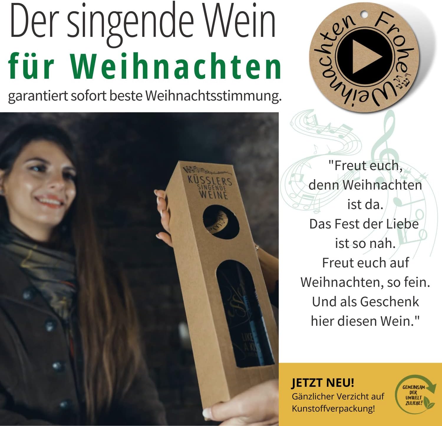 Weingeschenk – ein Top-Wein kombiniert mit Ihrem eigenen Lied in einer nachhaltigen Geschenkverpackung, das gab es noch nie. Dank des patentierten Musikmoduls direkt auf der Flasche ist das stimmungsvolle Weihnachtslied jederzeit abspielbar und garantiert vom 1. an beste Stimmung mit dem ausgewählten Top-Wein. Sekunde auf.