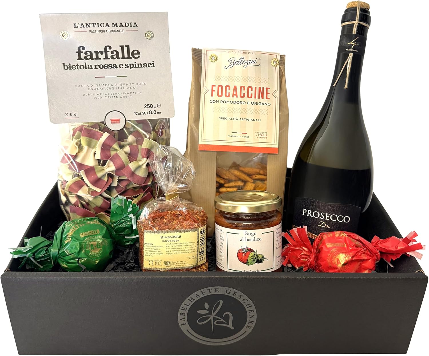Wein-Präsentkörbe – The Wine Guys The Wine Guys Geschenkkorb „Sense Magic“ italienischer Rotwein Riposato und französische Schokoladentrüffel mit Cognac-Geschmack und Meersalzschokolade