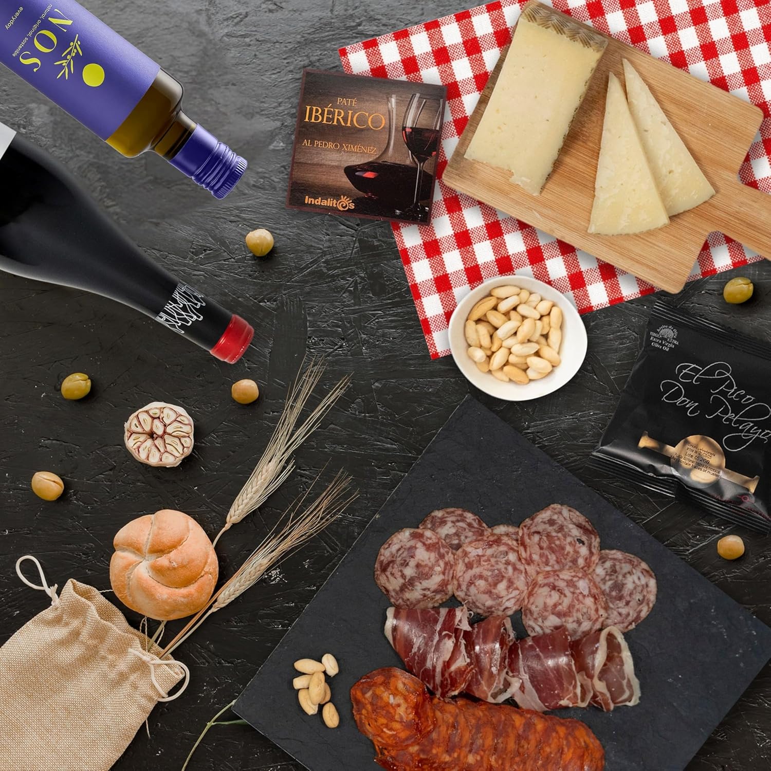 Wein-Präsentkörbe – UNIVERSO GOURMET | Exklusive Gourmet-Geschenkbox | Rotwein gU Ribera del Duero | Extra natives Olivenöl | Iberische Bellota-Wurstspezialitäten | Iberischer Schinken und Schafskäse | Geschenkkorb