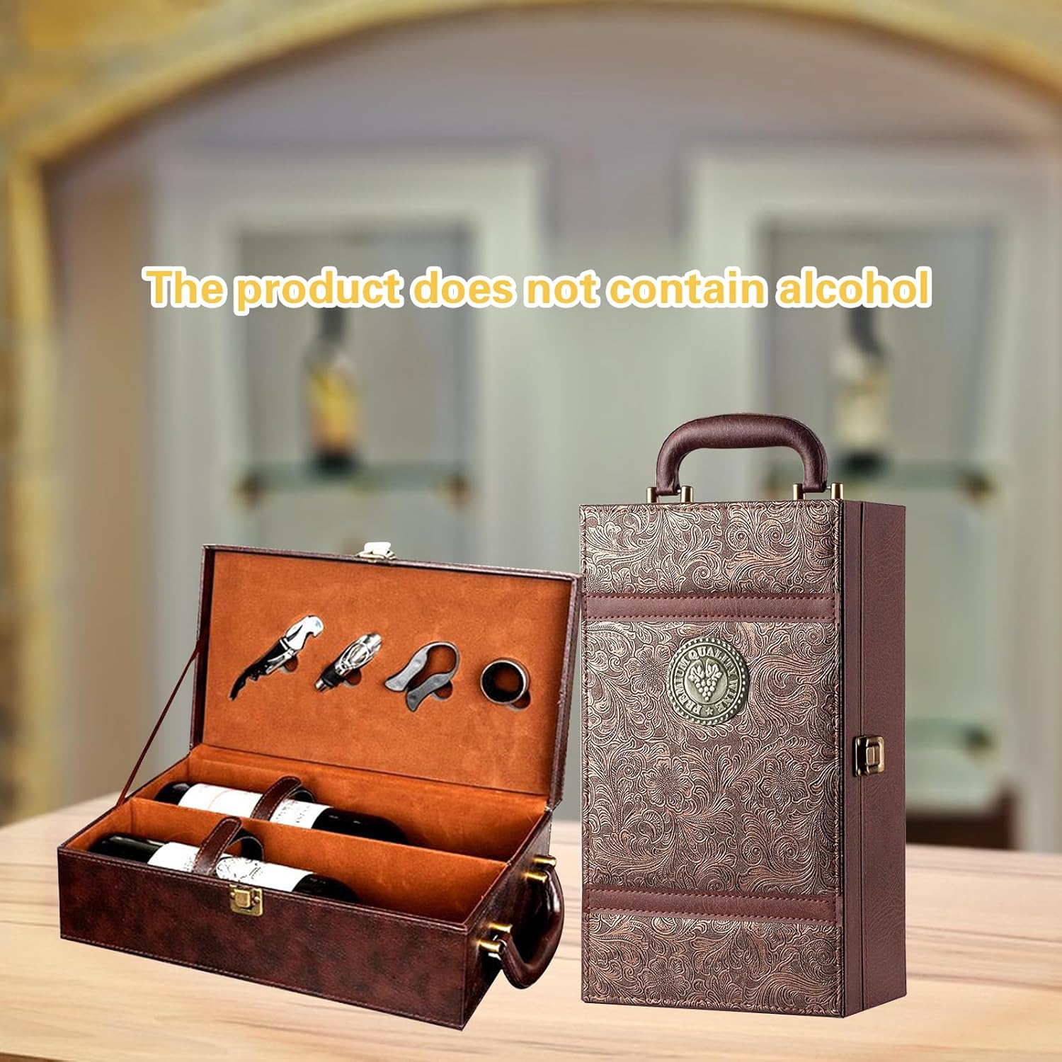 Premium-Wein-Geschenkbox: Hergestellt aus hochwertigem PVC-Material, bietet sie Haltbarkeit und einen Hauch von Eleganz. Die braune Retro-Farbe verleiht ihm einen Vintage-Charme und macht es perfekt für jeden Anlass.