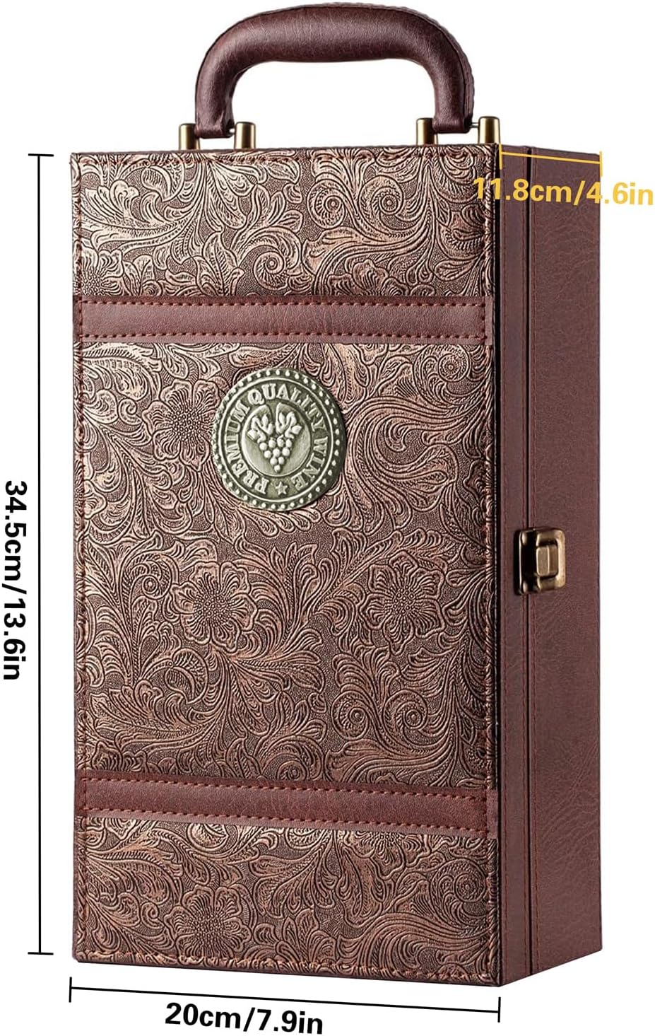 TRAGBAR UND PRAKTISCH: Mit den Maßen 35 x 20 x 12 cm ist dieser Weinkoffer kompakt und leicht zu transportieren. Ob Sie an einer Hochzeit, einem Jubiläum, einer Party oder auf Reisen teilnehmen, er bietet eine sichere und stilvolle Möglichkeit, zwei Flaschen Wein zu transportieren.