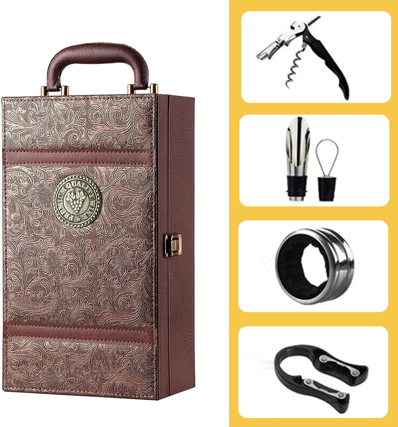 Wein-Präsentkörbe – Weinflaschenbox, Sommelier-Set, Wein-Geschenkset, Wein-Tragetasche für 2 Flaschen, Weinbox, Geschenkset, Weinetui für Hochzeit, Jahrestag, Party, Reisen, 35 x 20 x 12 cm