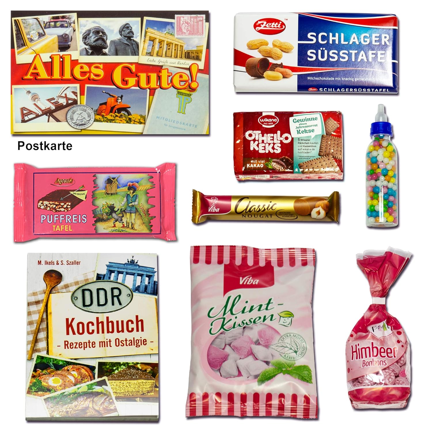 DDR-Kochbuch: Buch im handlichen A6-Format (114 Seiten). Auf geht’s mit dem DDR-Kochbuch auf die kulinarische Zeitreise. Mit viel Einfallsreichtum meisterten die „DDR-Hausfrauen“ viele Lieferengpässe und zauberten eine ganze Reihe köstlicher Gerichte, die wir heute nicht missen möchten. Über 40 neu fotografierte Köstlichkeiten mit leicht verständlichen Kochanleitungen: Soljanka, Letscho, Senfparty, Cold Dog und Quarkkeulen – guten Appetit.
