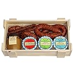 Diese Präsentkiste beinhaltet: 1 x Thüringer Knackwurst, 1 Paar Knacker, 2 Paar Minisalami, Glas Thüringer Leberwurst, Glas Thüringer Rotwurst, Glas Thüringer Sülze,, Altenburger Bauernsenf